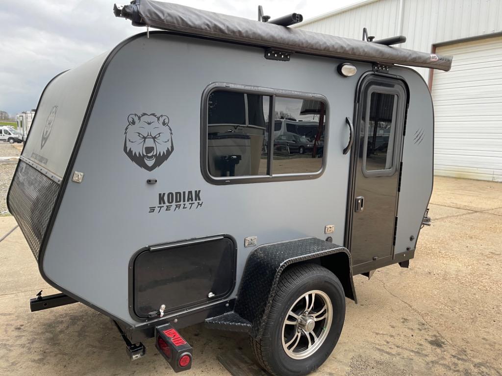 KODIAK STEALTH SPECIFICATIONS Interior Width 5′ (58) Interior Length 10′ (115) Interior Height 5′ (58) Total Exterior Width – Tire to Tire 80 Total Exterior Length – Tongue to Back 13′ Total Exterior Height – Ground to Standard Air Vent 80.5 Total Exterior Height – With Optional Deluxe Air Vent 82.5 Total Exterior Height – With Optional Roof Rack 84 Dry Weight – Cabinet & bed/dinette package 1,525 Lbs. Tongue Weight 183 Lbs. Carrying Capacity – Depending on Options 1,465 Lbs. GVWR 2,990 Lbs. Axle Type Heavy Duty Leaf Spring (Trailer frame: Utility frame construction of Cold-rolled steel. Gloss black paint coating.) Tire Size 15 Tires ST205/75R15 mounted on black steel rims – aluminum rims optional Ground Clearance 14 Flat Fender Weight Capacity 300 Lbs. Ball Height – 2 Ball Required 17 – 18 From the ground to the top of the ball Bed Size – RV Queen 73 long x 58 ½ wide (3 dinette cushions convert into bed) Dinette Table Size 20 wide x 35 long Window Size 37 wide x 21 tall Main Door Opening 22 wide x 54 tall Cargo Hatch Opening (Dual) 22 Wide X 11.5 Tall Dinette Seat(s) Size 19 ½ wide x 35 long x 15 tall (each seat) Camper Sidewalls Grey exterior – ¾” exterior grade plywood with aluminum on the outside and HPL (mid 2021) on the inside Exterior Roof Material .040 aluminum – Choose between silver or white PV coated Lower Front Cabinet Size Depth 17 ½” x Length is 36” Shelf Above A/C Height 9 3/4” x Depth 19” x Length 22½” ; Clearance from floor to bottom of the shelf is 19” Upper Front Cabinet Size Length of 58 ½” x Depth of 11” x Height of 8” Exterior Diamond Plate Color: Black Optional Roof Rack Load Capacity 350 Lbs. max A Frame Trailer Box Back-36 Front-18 Width-19.5 Height-18 (weighs: 20 Lbs.) Battery Type AGM Deep Cycle LDC 12-115-G31 BCI Group 31 (weighs: 70 Lbs.) Outside Table 35 long x 19 wide (weighs: 15 Lbs.) A/C Unit 5,000 BTU – Front face is 16 wide x 11 tall (weighs: 40 Lbs.) Optional Awning 8.2FT long x 8.2FT wide (weighs: 35 Lbs.) 2 Rear Receiver Weight Limit 250 Lbs. max Here are Van.Life we want to raise the bar for new RV purchases. That’s why we give you 30 man hours of thorough testing with every new RV purchased off our lot. Our pre-delivery inspection is NOT a gimmick. We see the horror stories out there and want to simulate a week of use before we hand you the keys. This prevents lengthy service visits before you can enjoy your new vehicle. We believe that the RV industry has had a pass for delivering low quality control too long; there is no way people who pay the money they do for luxury Class B vans should have to endure the poor service they do. As a purchaser of a new van from https://van.life , we gaurantee that all possible steps have been taken to ensure the most pleasurable ownership experience possible. Ask about your available customizations with https://van.life -Agile Offroad- https://agileoffroad.com -Aluminess- https://www.aluminess.com -ARB USA- https://arbusa.com/products -Backwoods Adventure- https://backwoodsadventuremods.com -Baja Designs- https://www.bajadesigns.com – Canyon Adventure Vans- https://canyonadventurevans.com -Compustar / idatalink- https://www.compustar.com -Curt Manufacturing- https://www.curtmfg.com -Dometic- https://www.dometic.com/en-us/outdoor -FlareSpace- https://flarespace.com/collections/shop-camper-van-conversion-parts -Houghton- https://www.recpro.com/rv-air-conditioners -Lithionics- https://lithionicsbattery.com -LunoLife- https://lunolife.com -Owl Vans- https://owlvans.com -Mid-City Engineering- https://www.midcityengineering.com -Off Highway Vans- https://www.offhighwayvan.com -Renogy- https://www.renogy.com -Rhino Linings- https://rhinolinings.com -RoamRig- https://shop.roamrig.com -S&B Filters- https://www.sbfilters.com -Terra Wagen- https://www.terrawagen.com -Thule- https://www.thule.com/en-us -Van Compass- https://vancompass.com -VB Air Suspension- https://www.vbairsuspension.com/en -Zamp Solar- https://www.zampsolar.com -WeBoost- https://www.weboost.com ***Additional Charges May Apply***