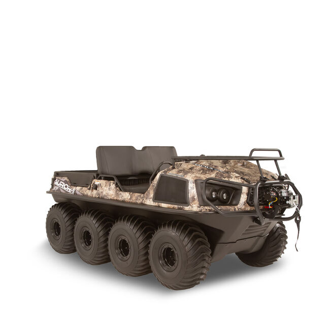 The Aurora 800 SX Huntmaster is raring to go on its next hunting adventure. With the full amphibious body, the Aurora 8×8 Series is the premium platform for ARGO, making it the most advanced and powerful XTV available. The massive V-Twin engine options give you the high-performance power to conquer obstacles at work or at play. The new Instant Torque Clutch (ITC) technology complements the Admiral transmission with ARGO Progressive Steering for a smooth and comfortable ride. This modern-day land-and-water warrior disguised now with TrueTimber Prairie camo is ready to take on nature’s toughest battles. Charge!