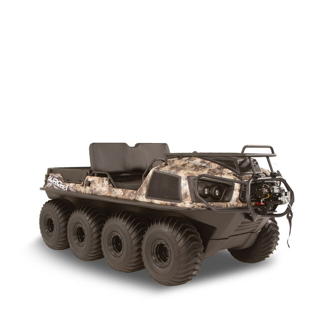 The new Aurora 950 Sx Huntmaster is raring to go on its next hunting adventure. The amphibious Aurora 8×8 Series is the premium platform for ARGO, making it the most advanced and powerful XTV available. The massive V-Twin engine options give you the high-performance power to conquer obstacles at work or at play. The new Instant Torque Clutch (ITC) technology complements the Admiral transmission with ARGO Progressive Steering for a smooth and comfortable ride. This modern-day land-and-water warrior disguised now with TrueTimber Prairie camo is ready to take on nature’s toughest battles. Charge!